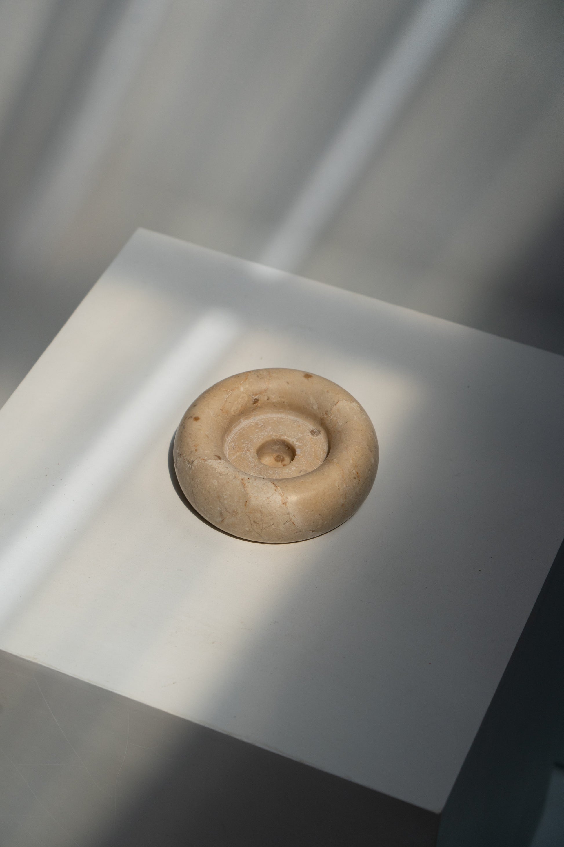 Organically shaped candle holder cut from a single piece of solid marble or onyx, hand finished by artisans in a growing stone atelier in Bali.