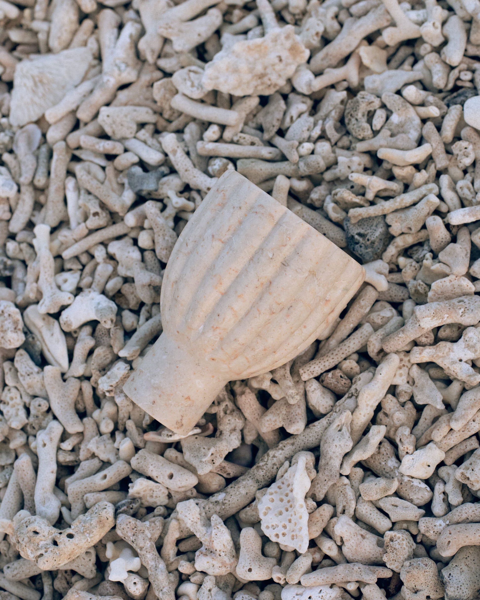 Sculpted with precision and care, our ribbed marble glass is hand-carved in Indonesia from natural beige marble. Its tactile ribbed surface highlights the artistry of traditional carving, while the weight and coolness of marble bring a sense of timeless luxury.